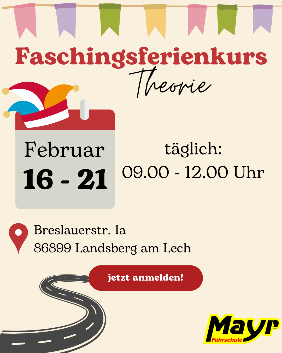 Nutze die Faschingsferien sinnvoll und absolviere alle 14 Theoriestunden kompakt im Intensivkurs.